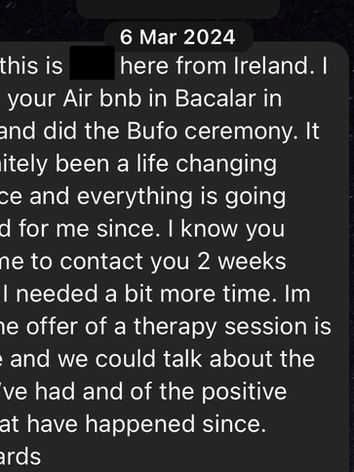 I first met rose at the Bufo Alvarius Sanctuary in Tulum in 2023, an amazing setting to practice with the medicine, and Rose served me the kambo. Rose had a calm and soothing energy and so when I decided to sit with bufo for the 6th time in 2024 I asked Rose to be my facilitator.
